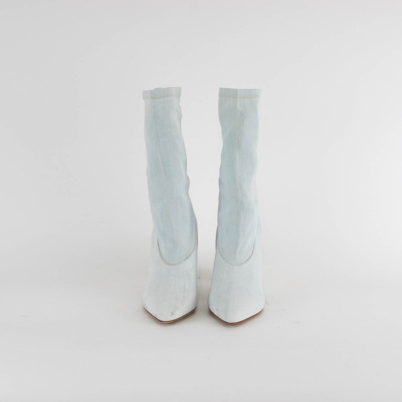 Yeezy Beige Knit Pointed Toe Lace up Boots