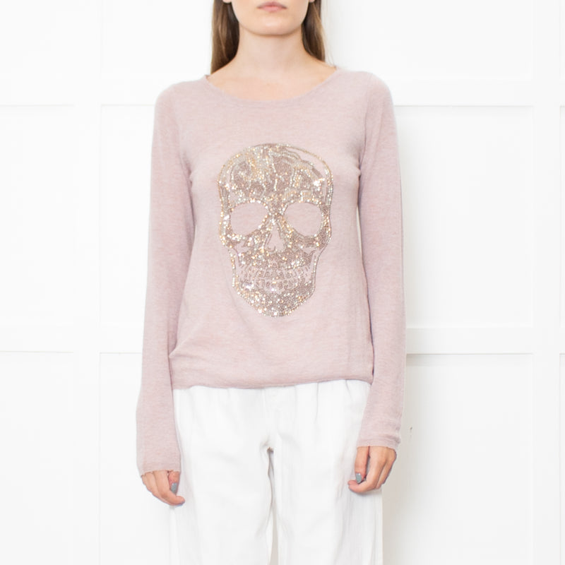 Zadig & Voltaire Deluxe Pink Cashmere Jumper With Diamante Skull