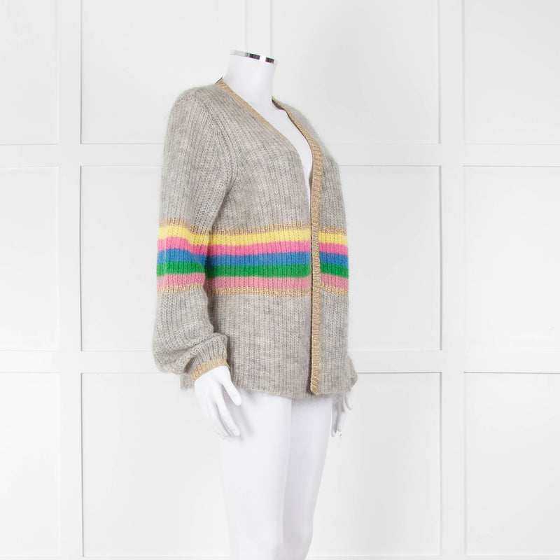 Wyse Grey Mohair Cardigan With Rainbow Stripes