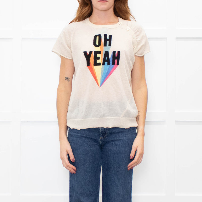 Zadig & Voltaire Beige Slogan Cashmere Blend Short Sleeve Top