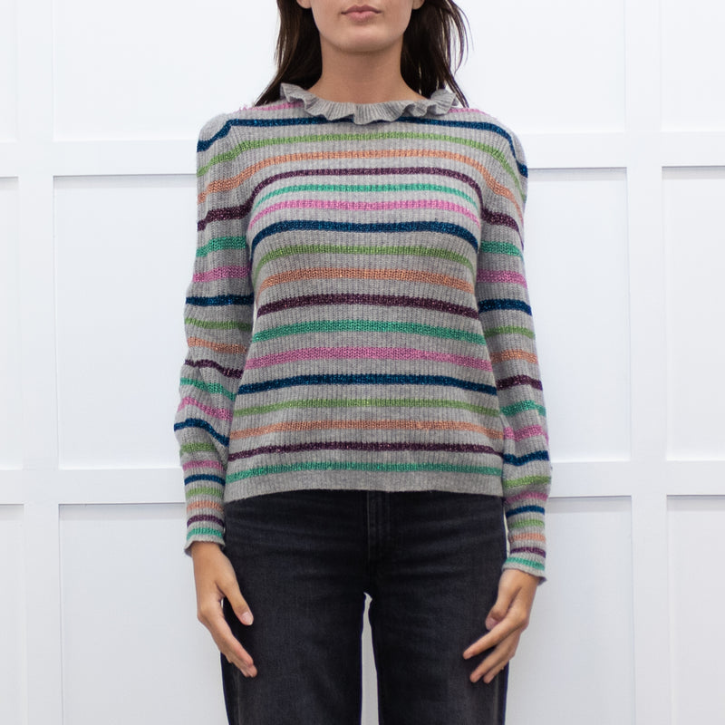 Wyse Grey Multi Lurex Stripe Cashmere Blend Frill Neck Jumper
