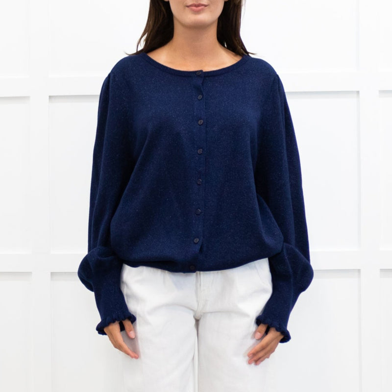 Wyse Navy Cashmere Blend Sequinned Trim Cardigan