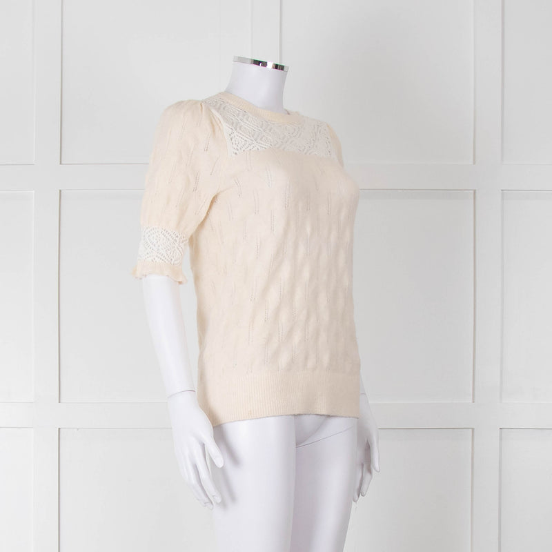 YaYa Woman Cream Lace Yolk Shortsleeve Jumper