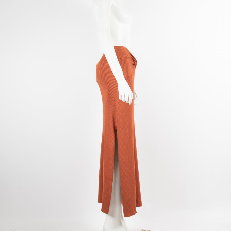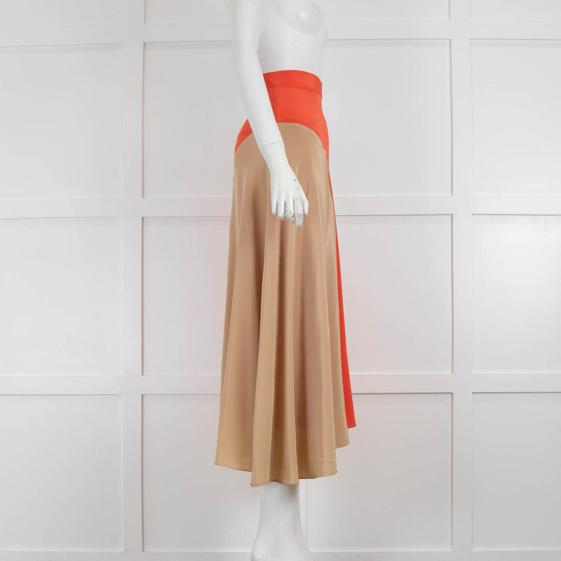 Cyclas Black Beige Pleated Waist Detail Midi Skirt