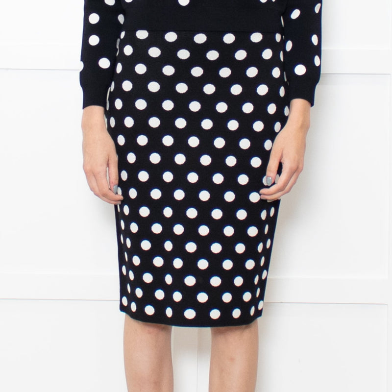 CH Carolina Herrera Black White Dot Stretchy Knit Pencil Skirt