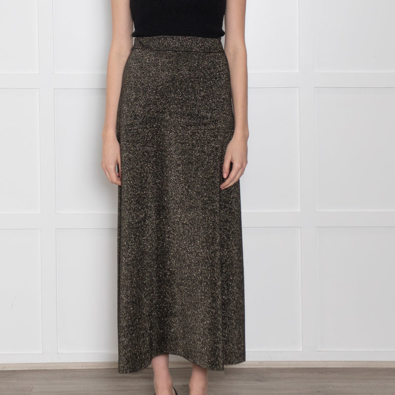 Cefinn Black & Gold Wool/Lurex Long Elasticated Waist Skirt