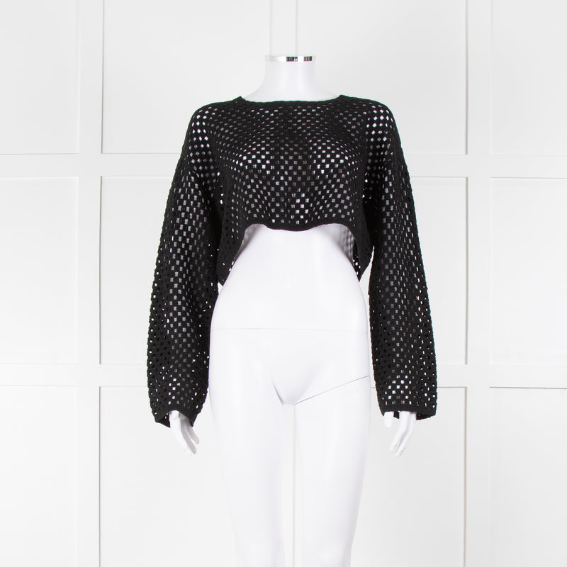 Anne Fontaine Black Mesh Sleeve Silver Chain Front Shirt