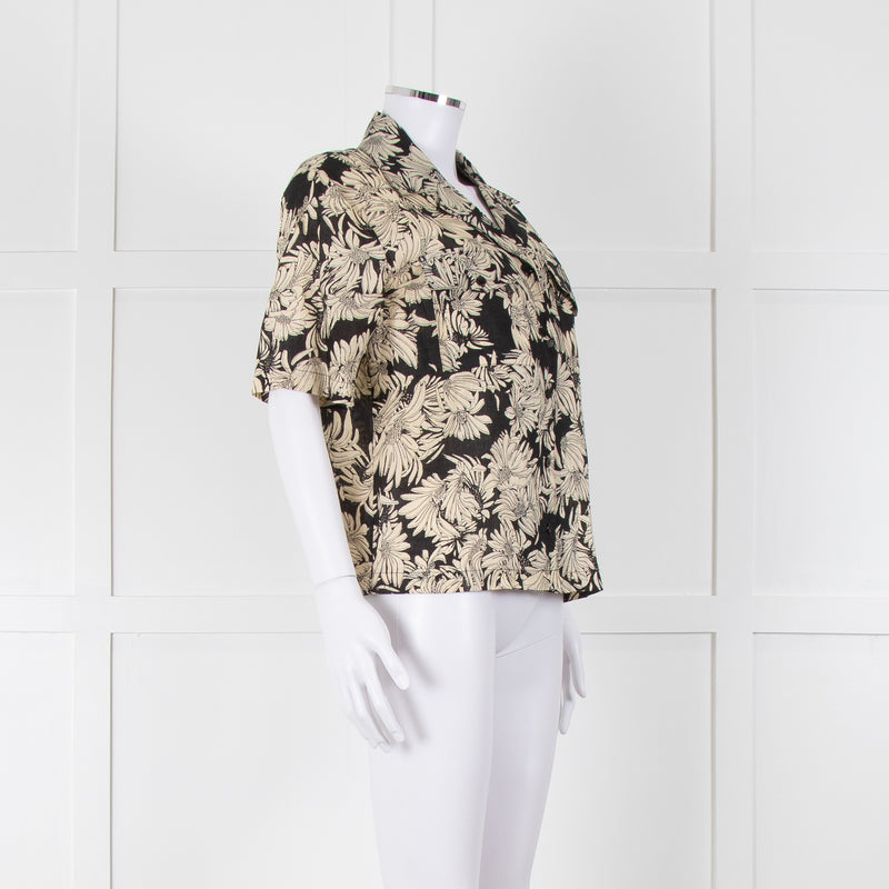 Anine Bing Black And Cream Floral Print Linen Shirt