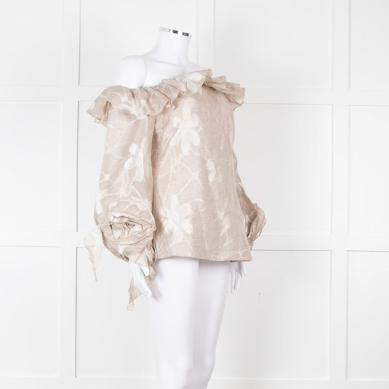 Anne Fontaine Beige Flower Sleeve Detail Top