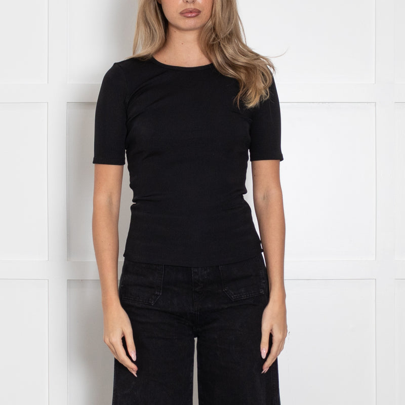 Anine Bing Black Cotton Ribbed Poloneck Top