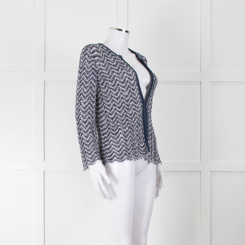 Amina Rubinacci Navy Cardigan with Silver Sequins