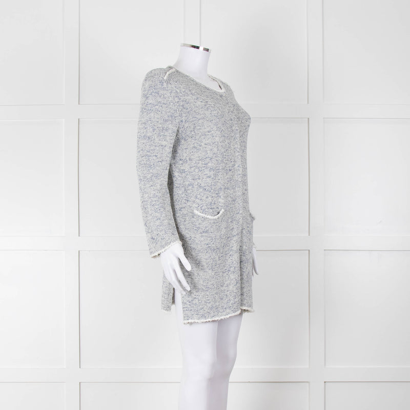 Amina Rubinacci White Blue Fleck Raw Edge Cardigan