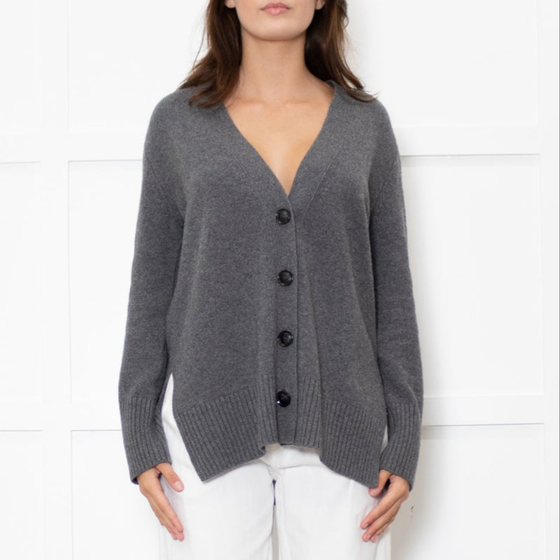 Amina Rubinacci Grey Cashmere V Front Cardigan