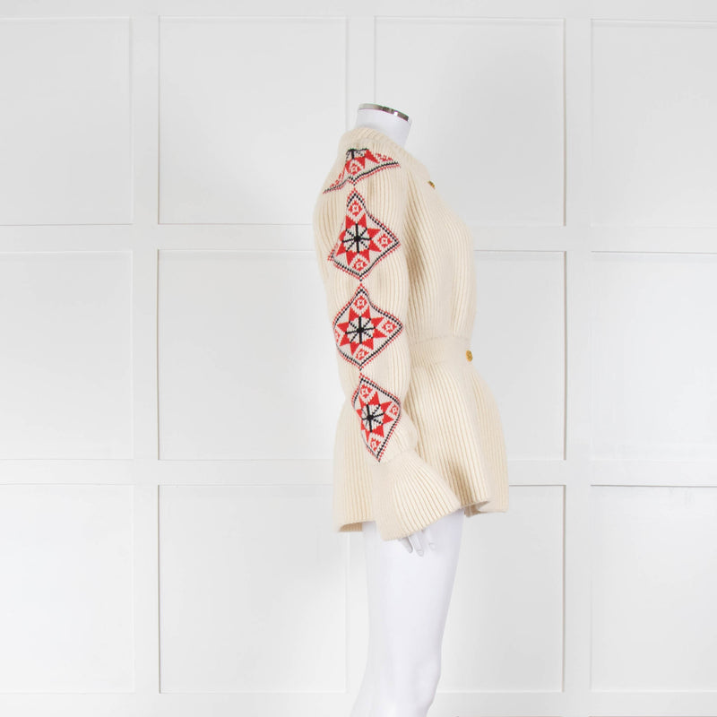 Ami Amalia Cream Red Organic Wool Romanian Blouse Cardigan