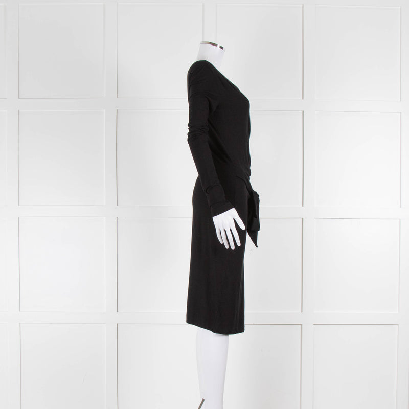 Armani Jeans Black Jersey Long Sleeve Belted Midi Dress