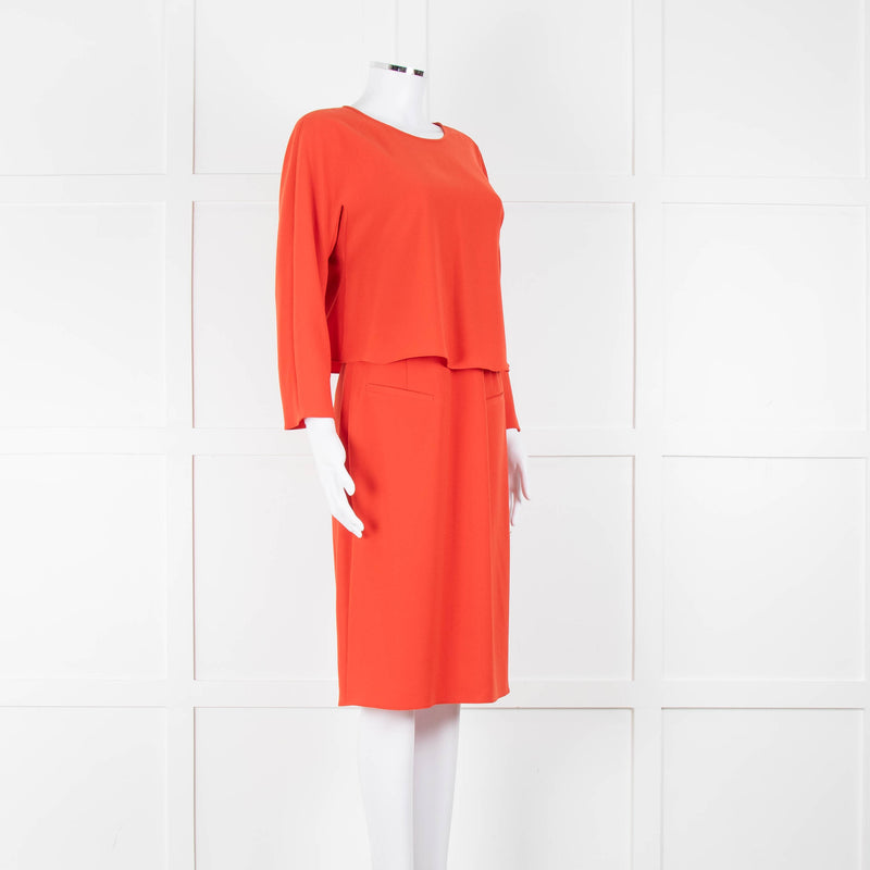 Armani Collezioni Coral Orange Red Sleeved Dress