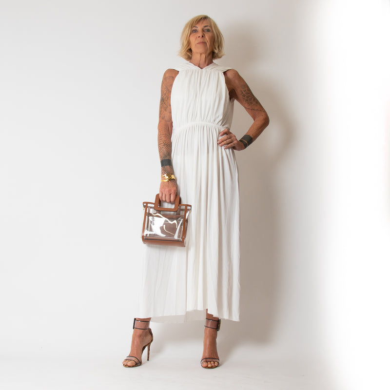 Another Tomorrow Shirred Off White Gathered Maxi Dress