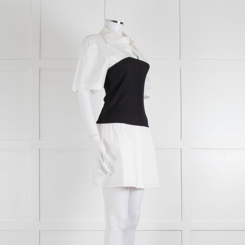 Anna Quan White Cotton Black Wide Waistband Mini Dress