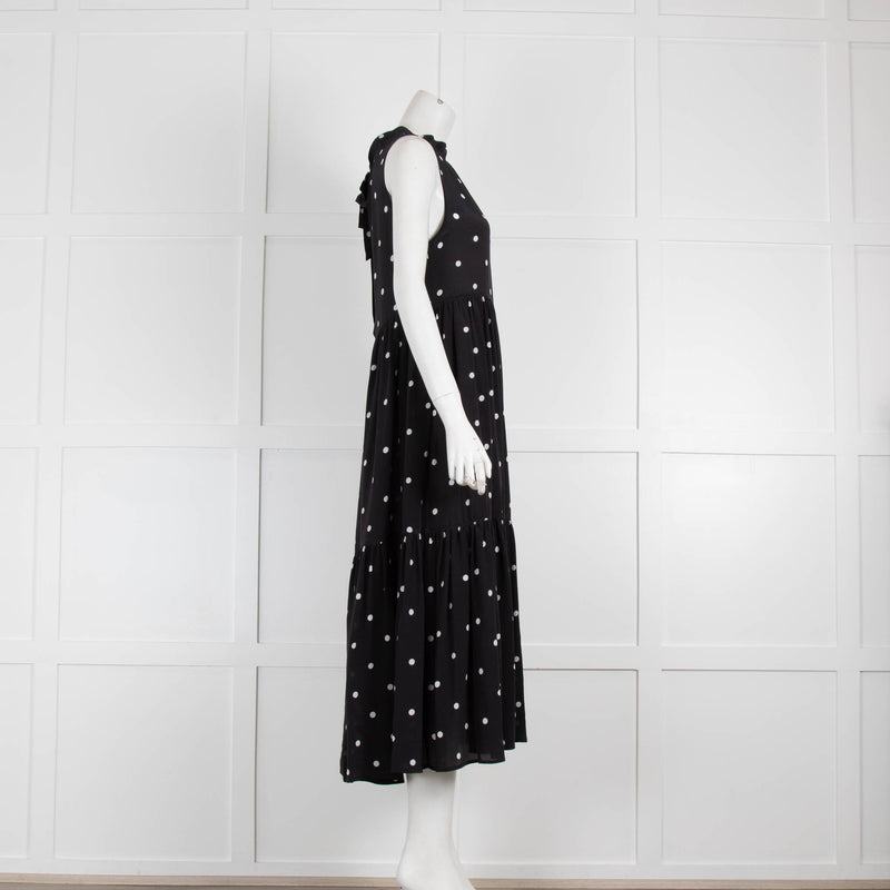 Asceno Black Polka Dot Tie Neck Dress