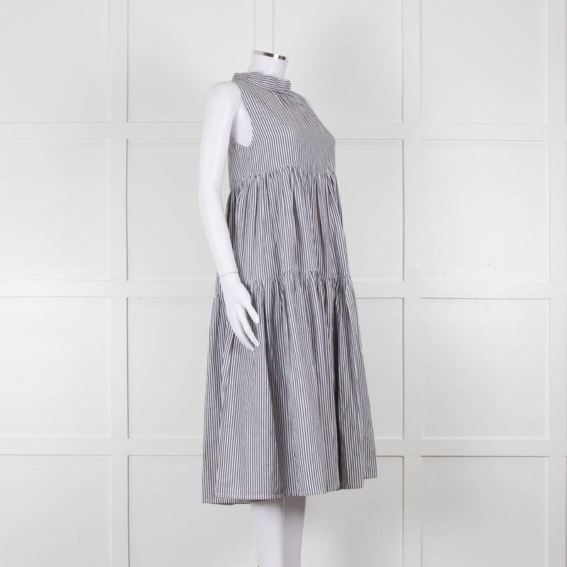 ASCENO Striped Cotton High Neck Tie Back Dress