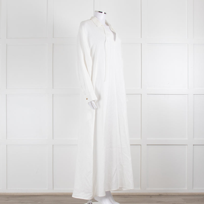 Asceno Cream Linen Tie Neck Maxi Cover Up Dress