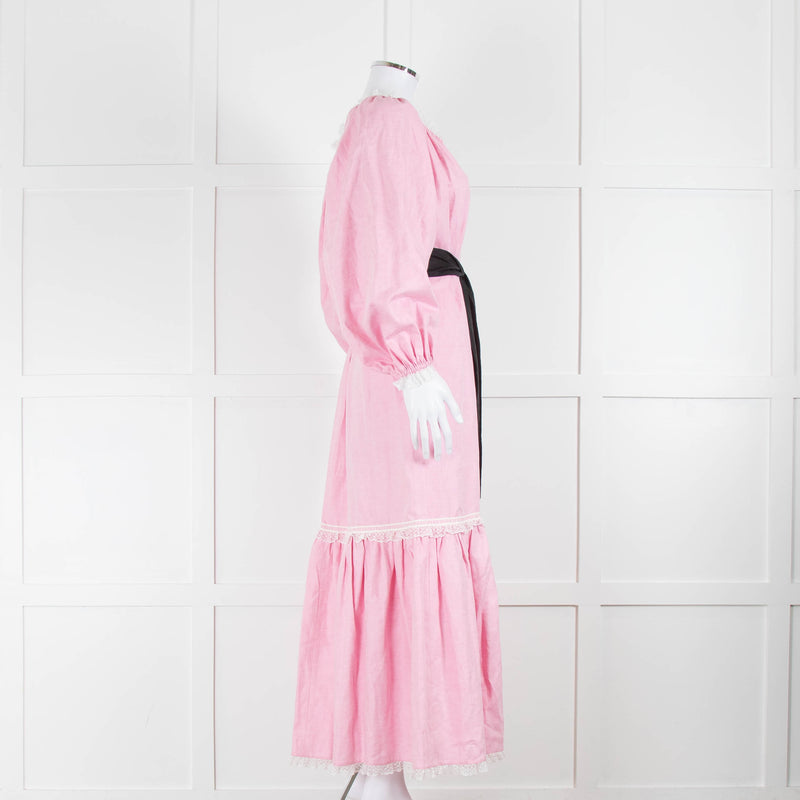 Anna Mason Pink White Lace Detail Cotton Dress