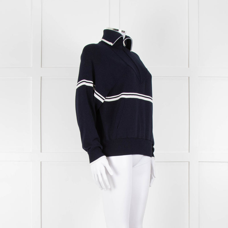 Ba&sh Navy Blue White Stripe Zip Up Sweater