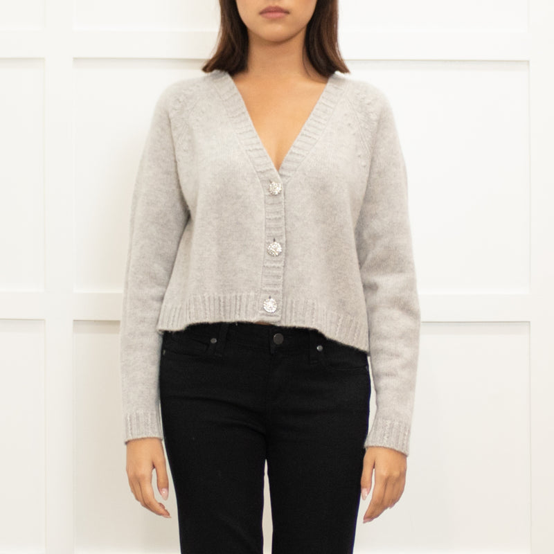 Ba&Sh Pale Grey Cashmere Diamante Button Cropped Cardigan