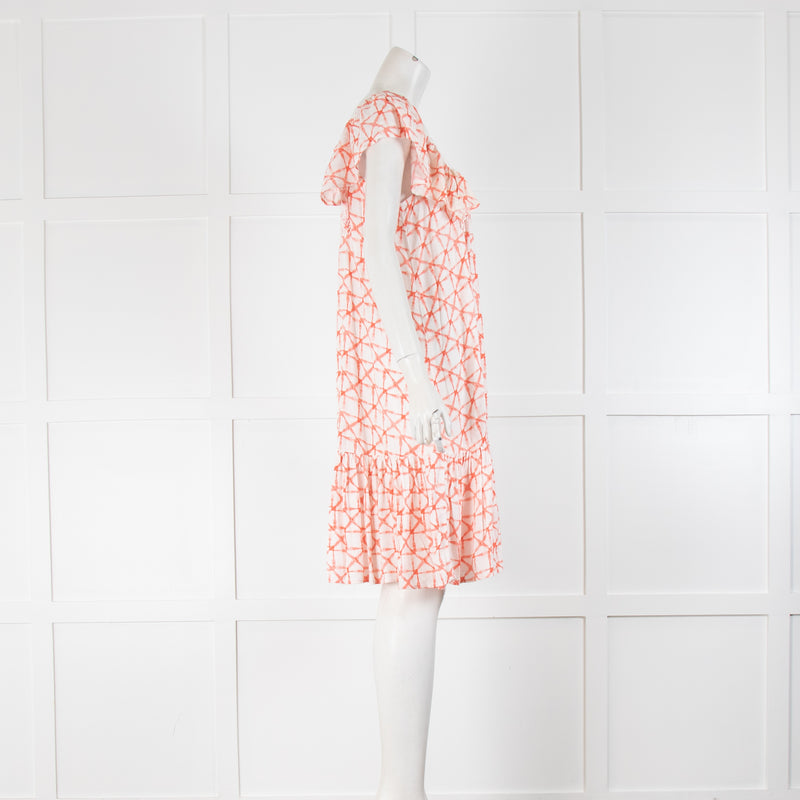 Atelier Reve Red And White Frilled Cap Sleeve Dress