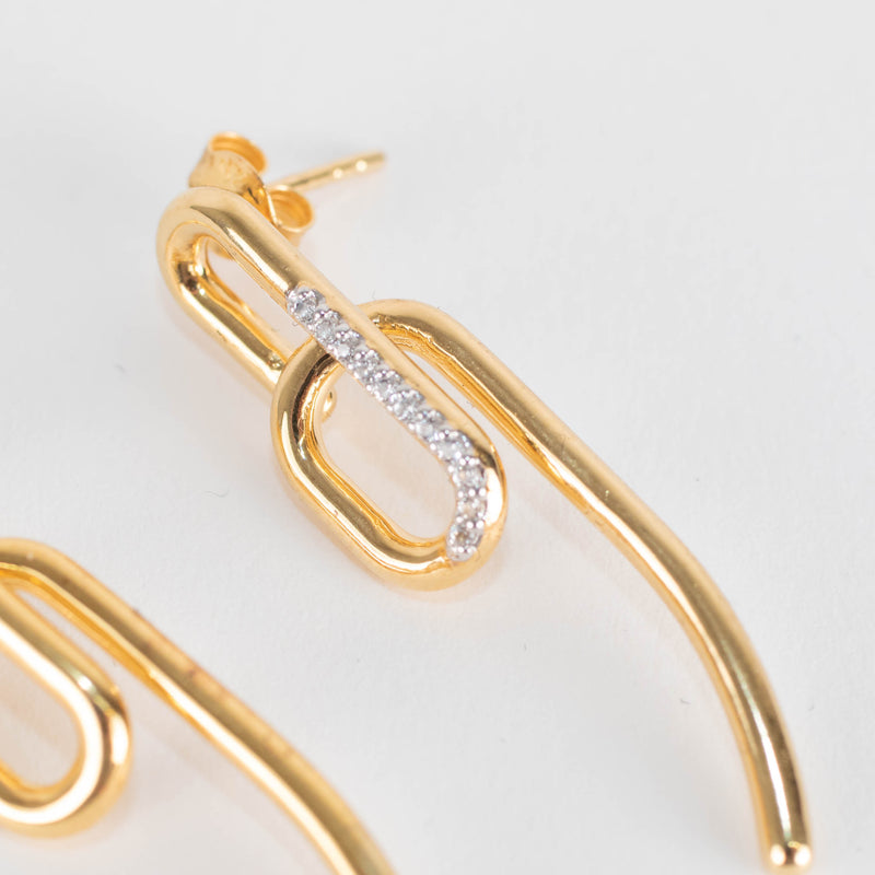 Otiumberg Gold Twisted Drop Earrings with Diamond on one side