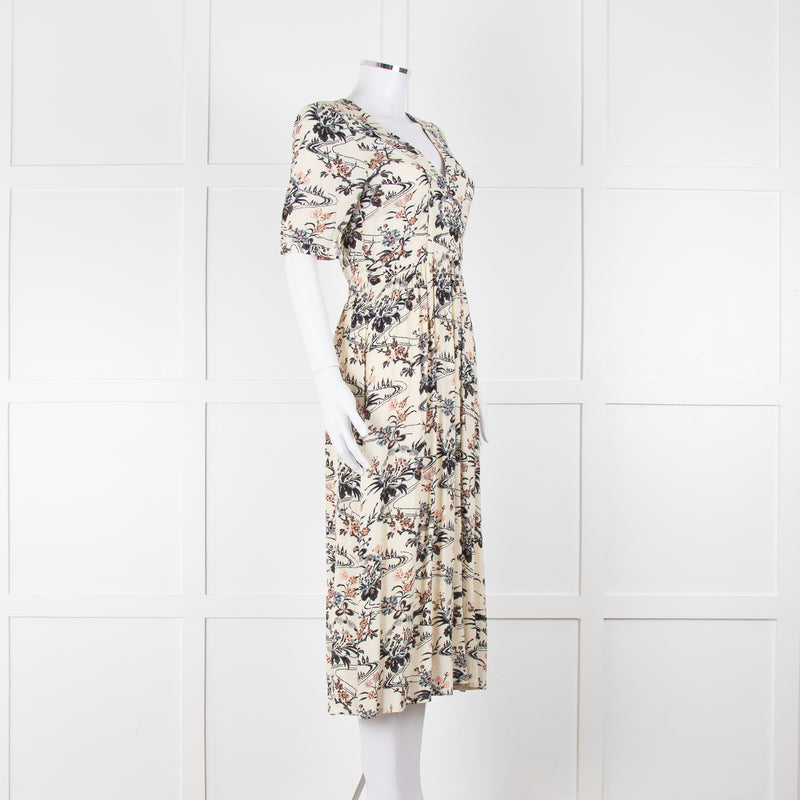 Ba&sh Cream Floral Mid Length Tea Dress
