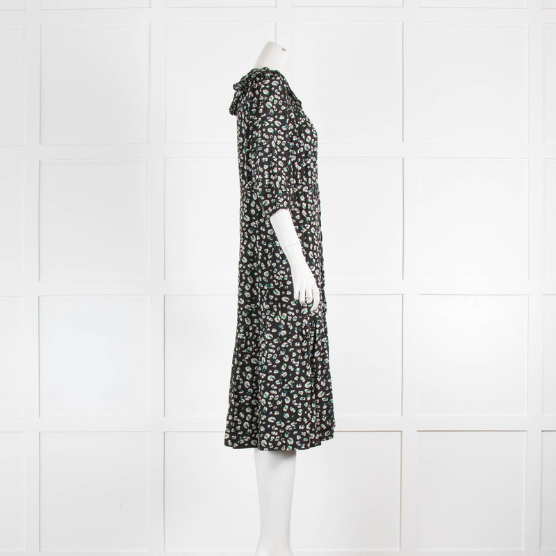 Ba&Sh Black Small Print Flowers 3/4 Sleeve Waist Tie Midi Dress