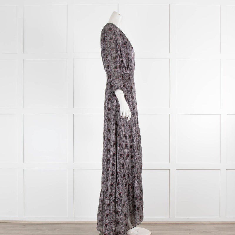 Ba&sh Black White Red Floral Wrap Around Frill Long Dress