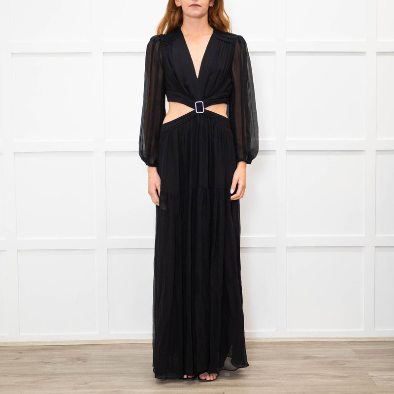 Ba&sh Black Tiered Cut Out Crystal Buckle Long Dress