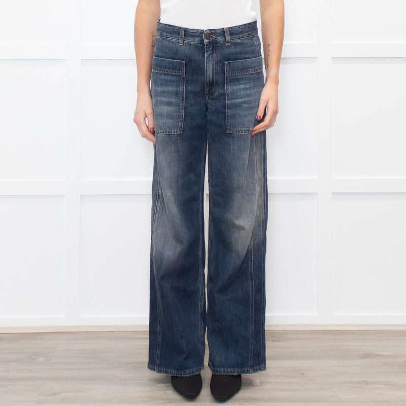 Me+Em Blue Denim Extreme Tapered Oversized Jeans