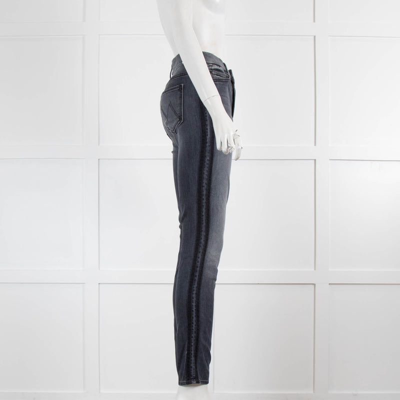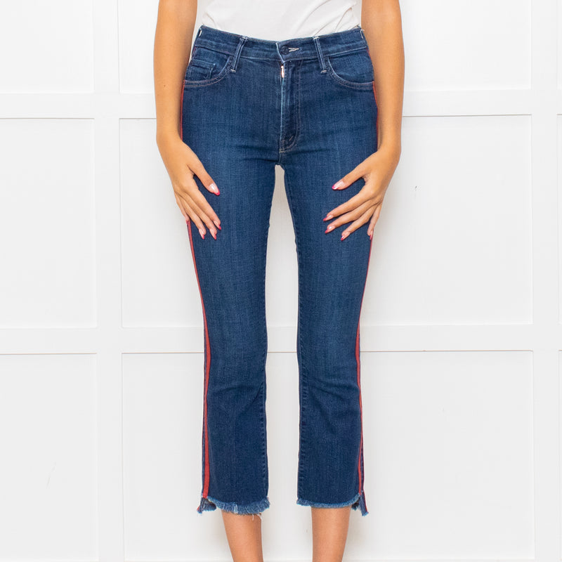 Mother Blue Denim Red Side Stripe Detail Cropped Jeans