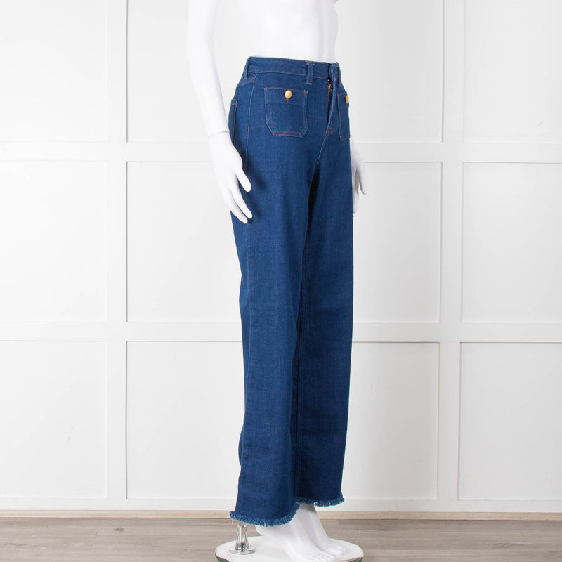 Me + Em Dark Blue Flared Jeans With Front Pockets