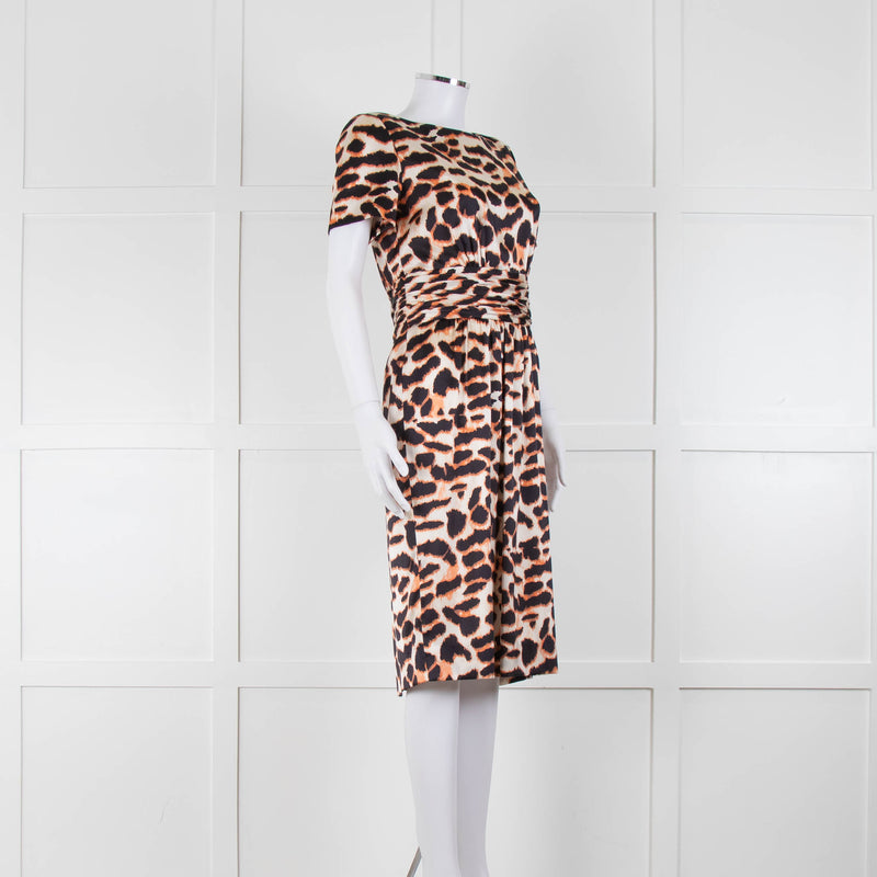 Stewart Parvin Cream Black Animal Print Silk Short Sleeve Dress
