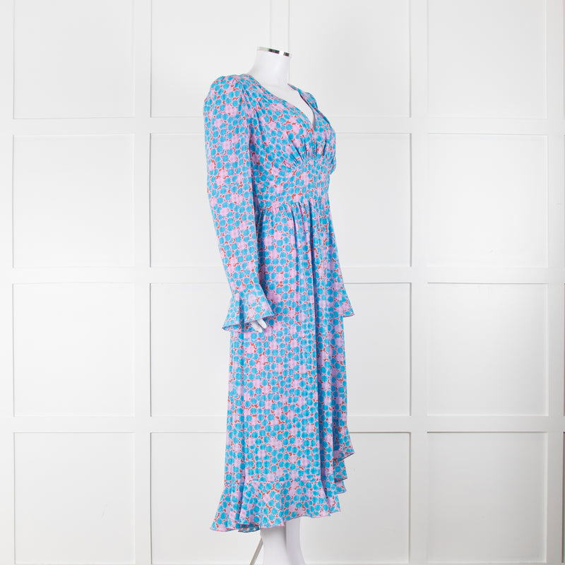Stine Goya Blue Pink Orange Geometric Print Long Sleeve Maxi Dress