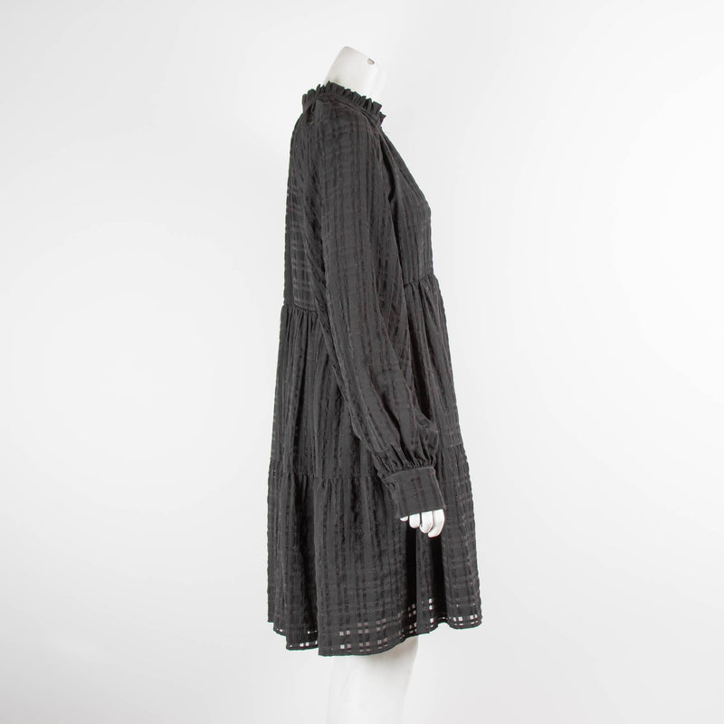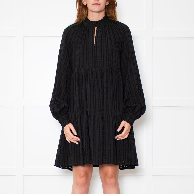 Stine Goya Black on Black Gingham Tiered Long Sleeve Dress