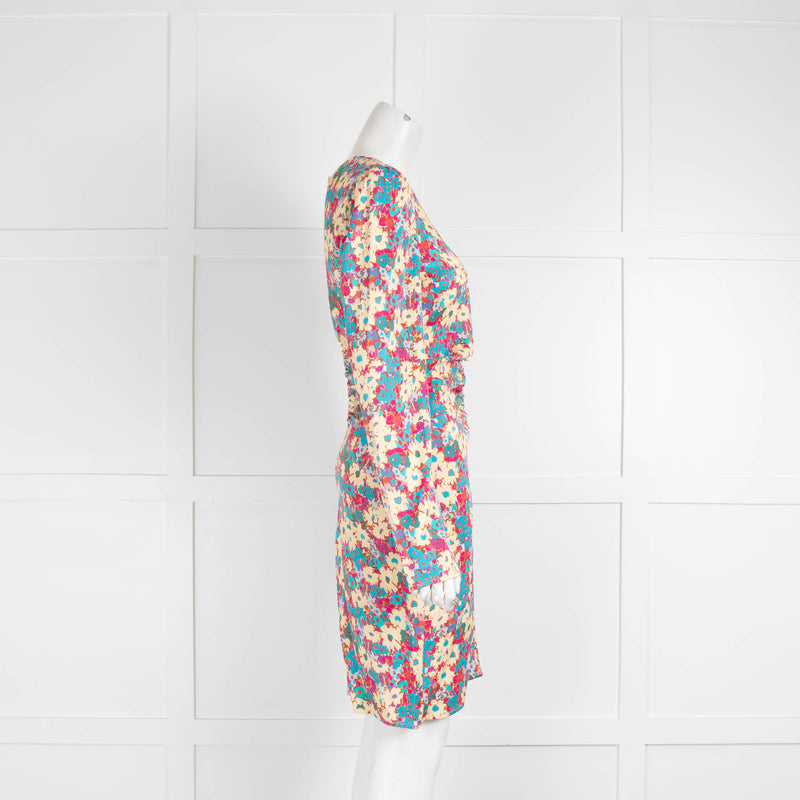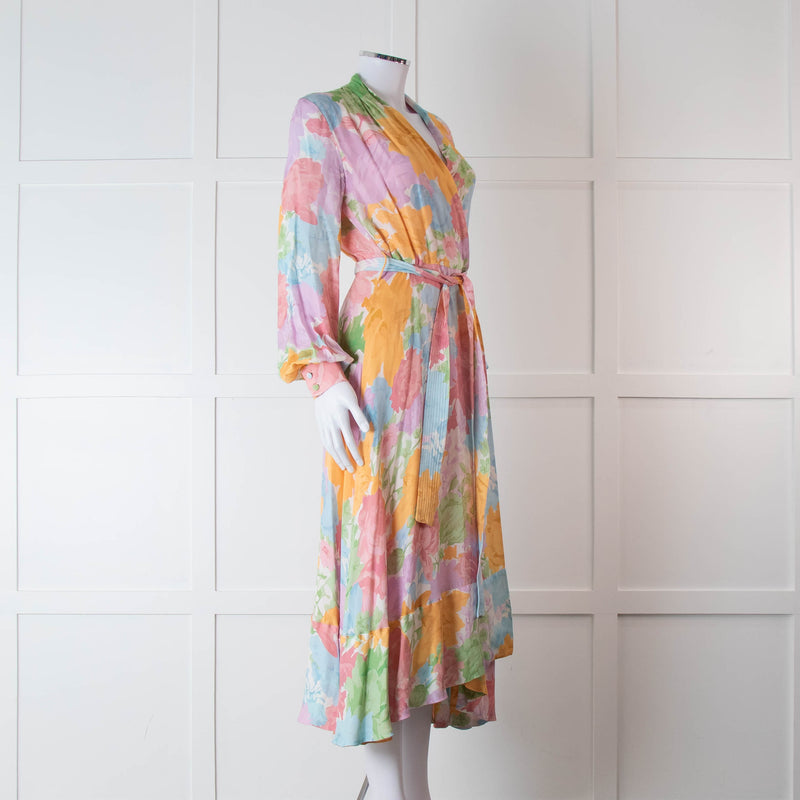 Stine Goya Pink, Yellow, Blue and Green Pastel Floral Wrap Dress