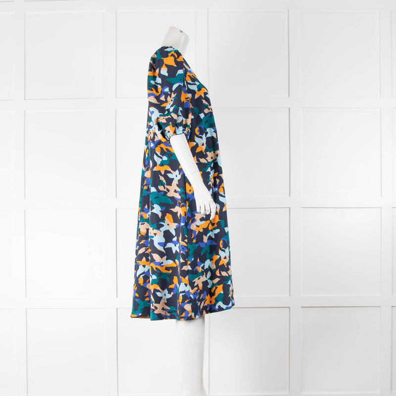 Stine Goya Navy Orange Print Puff Sleeve Dress