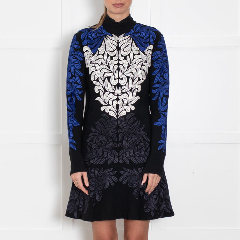 Stella McCartney Black L/S Dress With White & Blue Embroidery