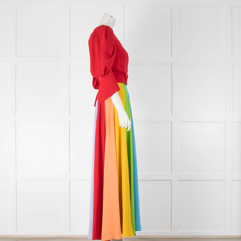 Suzannah London Red Dress with Rainbow Detailing