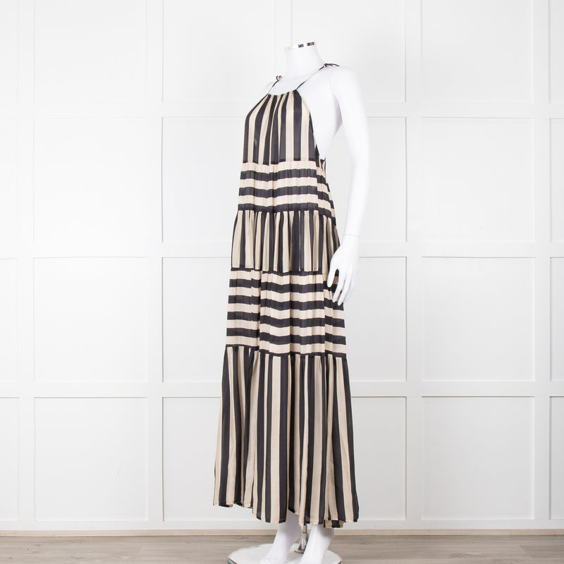Sundress Black and Beige Stripe Halterneck Midi Dress