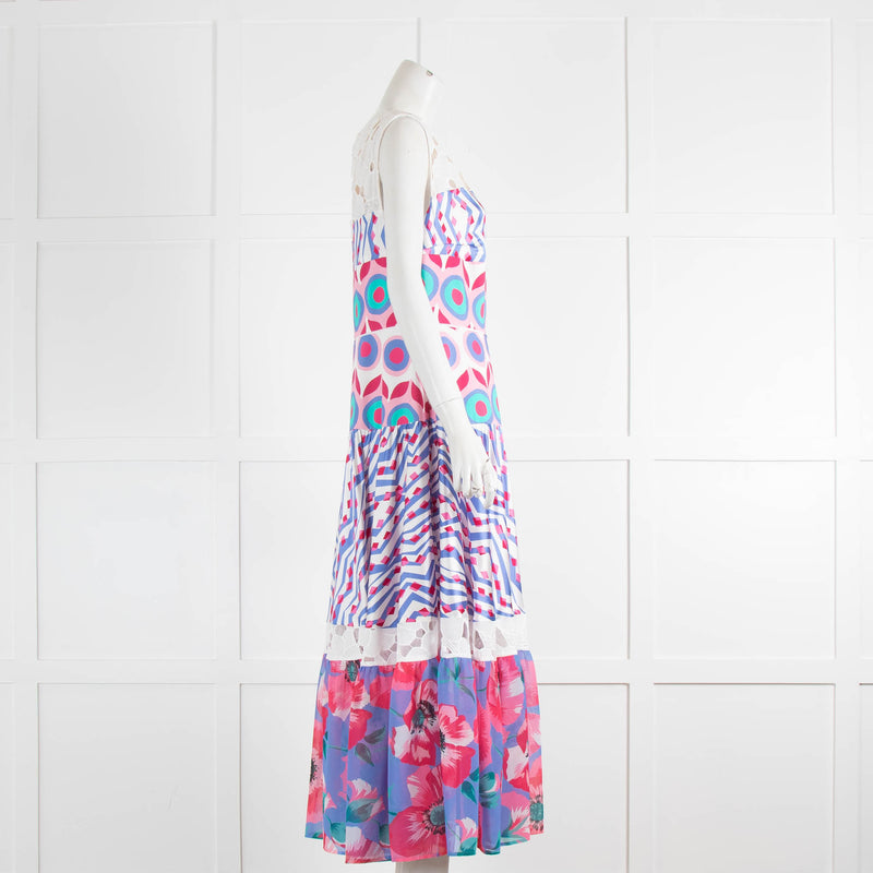 Talbot Runhoff Mixed Print Broderie Anglaise Sleeveless Midi Dress