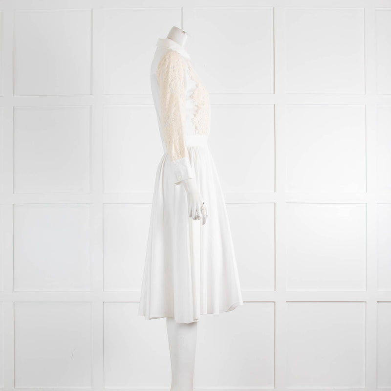 Tara Jarmon White Cotton Poplin Midi Dress with Cream Lace Insert