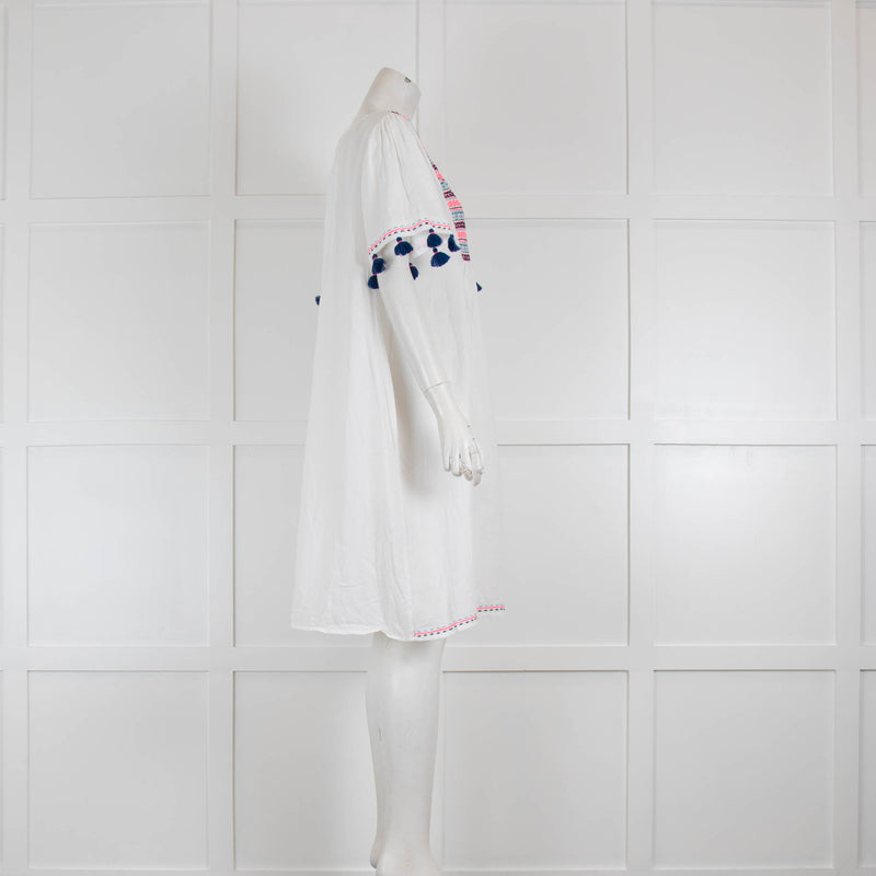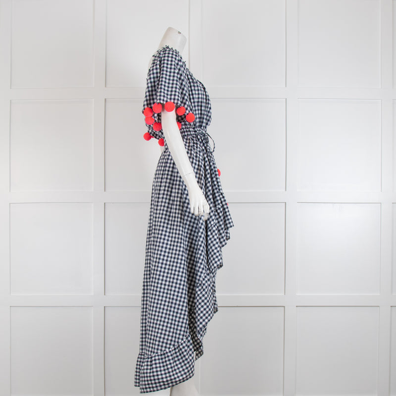 Sundress Navy & White Check Dress with Dipped Hem & Pom Poms