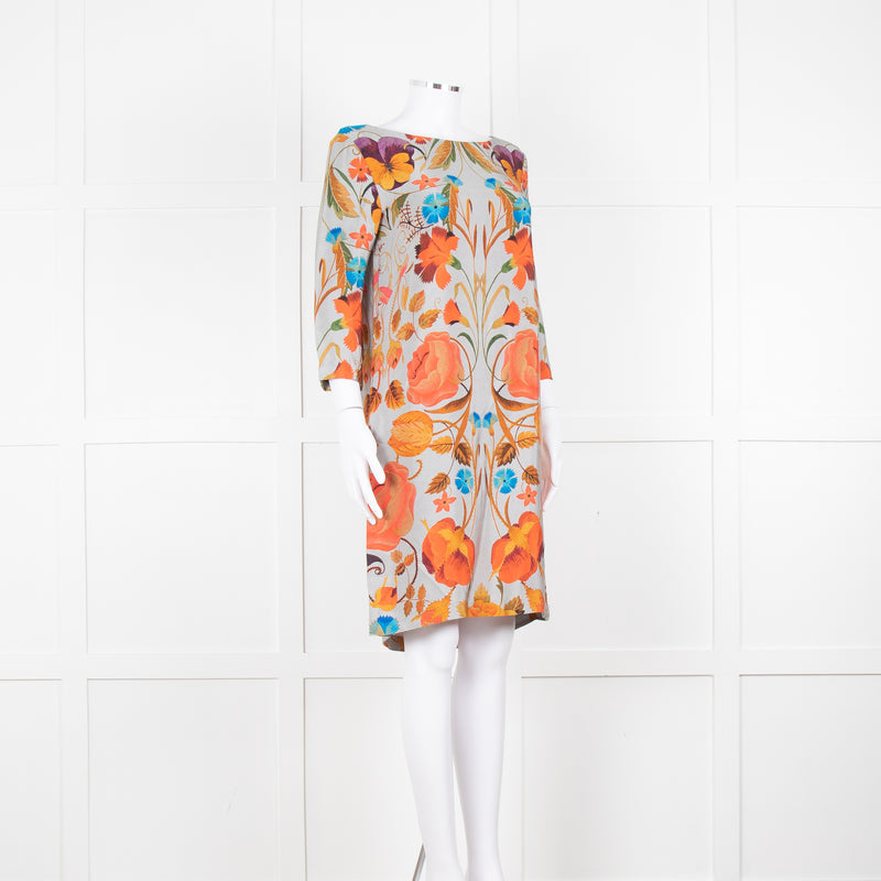 Temperley Grey Orange Floral Silk Tunic Dress