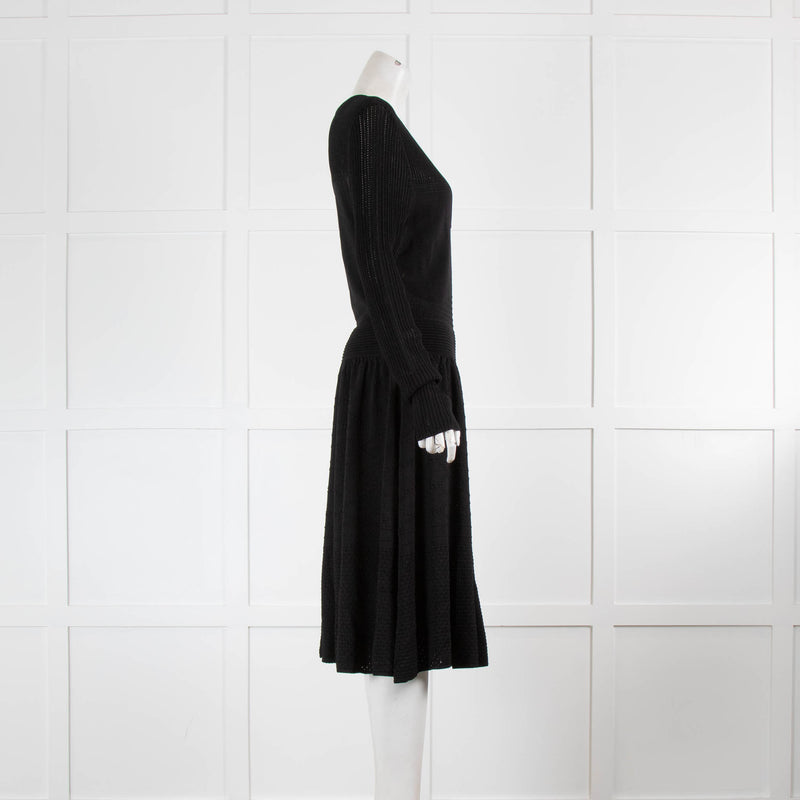 Temperley Black Knitted Long Sleeve V Neck Dress